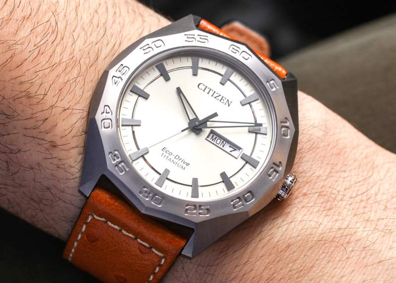 戴在手腕上的 Citizen Eco-Drive Super Titanium AW0060(公認的通用名稱,不會賦予手表個性)寬 44 毫米,非常薄,佩戴也非常舒適。表殼防水深度達 100 米,并覆有礦物(相對于藍寶石)水晶。安裝藍寶石水晶會花費更多的錢,鑒于這個價格,我認為礦物水晶是可以接受的。
