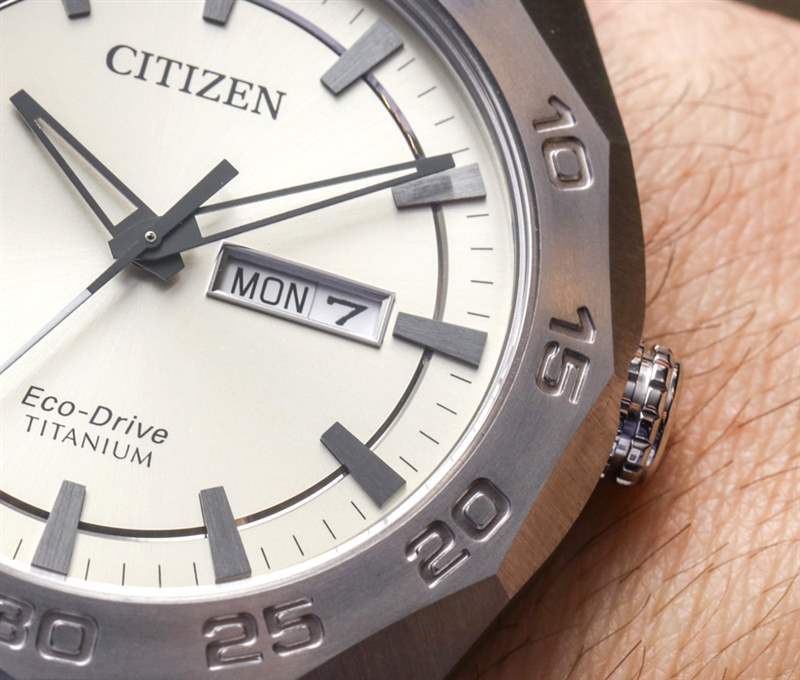 我很確定西鐵城會希望在不久的將來繼續重新審視這一系列 Eco-Drive Super Titanium 手表,并且可能會推出更多型號——但當然,對此沒有任何承諾或保證。在設計方面,我喜歡帶有 12 面幾何表圈的棱角分明的表殼。表圈上是分鐘指示器,它們與超級鈦金屬表殼的整體“銳利”設計相得益彰。廣告訊息廣告信息結束