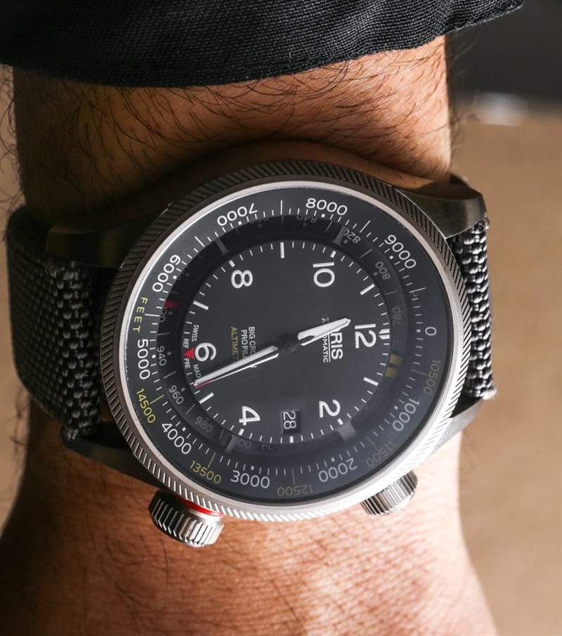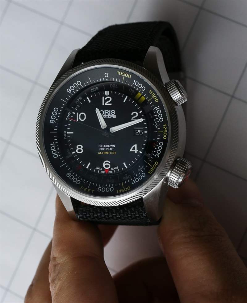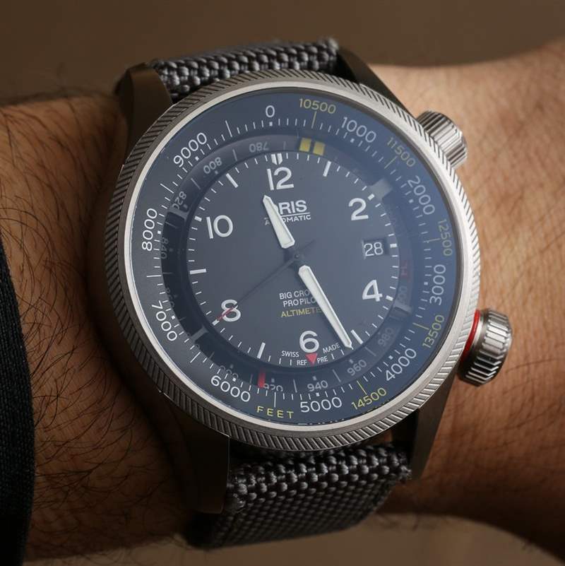 更多關于 Oris ProPilot 系列的整體信息,因為它也是今年的新品。Big Crown ProPilot 系列是一款全新的現代飛行員手表,擴展了現有的復古主題 Big Crown 系列。Oris 于 2014 年初推出了 Big Crown ProPilot 系列,當時包括帶日期的簡單三指針、更大的星期/日期型號和計時碼表 GMT 型號。aBlogtoWatch 在這里親身體驗了 Oris Big Crown ProPilot Chronograph GMT 手表——我仍然相信它會成為新飛行員手表系列中最暢銷的手表之一。有了新的 ProPilot Altimeter 模型,ProPilot 系列將有四個主要模型,并且有了一個良好的開端。高度計對全新飛行員腕表系列有多重要?