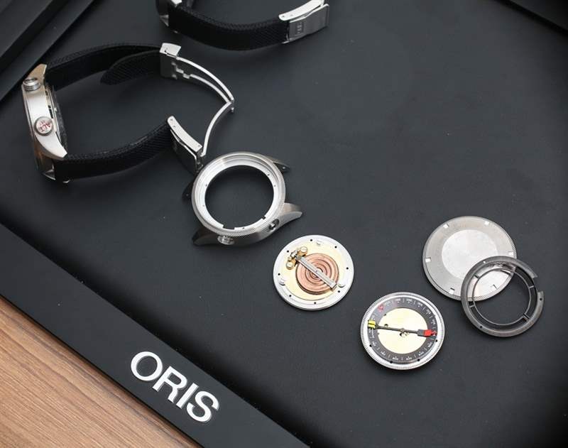 那么 Oris Big Crown ProPilot Altimeter 腕表是如何工作的呢?實際上,這非常簡單。手表的計時部分是 Oris 口徑 733,這是一個基本的瑞士 Sellita SW200 自動機芯,位于模塊頂部的表殼中間。機芯的柄軸延伸至 2 點鐘位置的表冠,可讓您上弦或調整 ProPilot 高度計的計時部分。