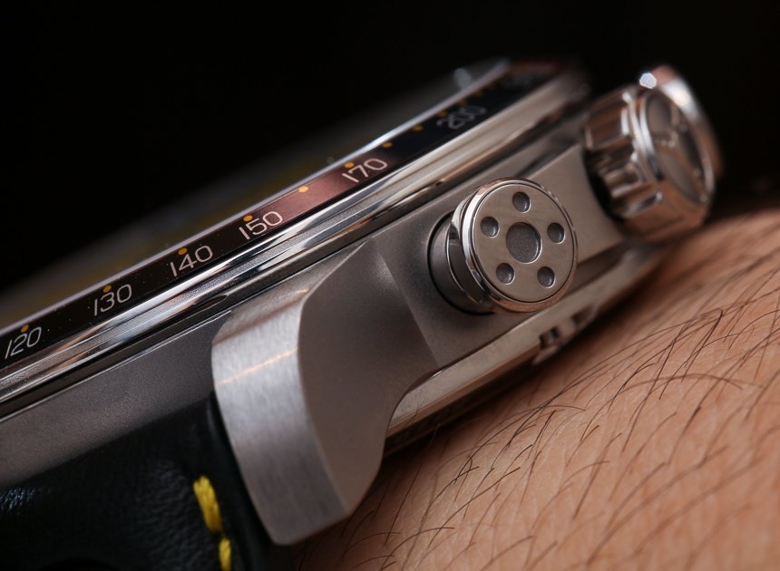 一些小的汽車外殼細(xì)節(jié)又回來了,其中包括活塞式計(jì)時(shí)按鈕以及表冠上的方向盤標(biāo)志。底蓋用一系列六角螺絲固定到位,使整體外觀升級(jí)。該表殼防水深度達(dá) 100 米,這是對(duì)之前型號(hào) 50 米防水深度的非常受歡迎的升級(jí)。這可能看起來沒什么大不了的,但 100 米的防水性能使這款產(chǎn)品進(jìn)入真正的“運(yùn)動(dòng)手表”領(lǐng)域,而不僅僅是一款具有高品質(zhì)組件的運(yùn)動(dòng)時(shí)尚手表。