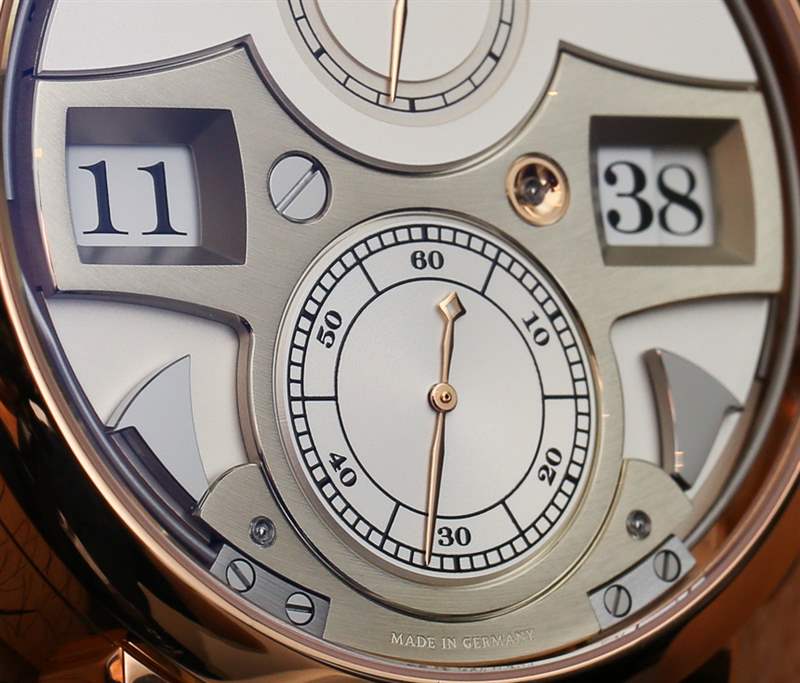 最初的 Zeitwerk 展示了一個雙數字顯示屏,提供了一個窗口,可以查看左側的小時數和右側的分鐘數。圓盤具有跳躍數字,這意味著當小時或分鐘發(fā)生變化時,下一個數字會立即跳到位,而不是逐漸移動的圓盤。顯示屏下方是傳統(tǒng)的模擬小秒盤,上方是動力儲存指示器。后一種功能是我認為在手動上弦手表中極為重要的功能。廣告留言廣告信息結束