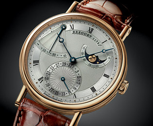 表殼寬42.5毫米,厚度為11.5毫米,相對較薄。手表具有藍寶石水晶玻璃,防水深度為30米。與寶璣不同,表殼經過拋光處理,邊緣光滑(寶璣喜歡手表上的凹槽邊緣)。天梭還對表盤設計進行了一些改變,增加了更現代外觀的棒形指針(而不是絨球指針),并修改了寶璣風格的阿拉伯時標。偏心動力儲存指示器保留在10點鐘和11點鐘位置附近,而月相指示器則優雅地內置于輔助秒針表盤中。它使英俊的外觀高度讓人聯想到寶璣成名的外觀。