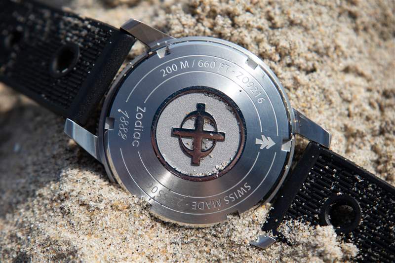 當然,我從來沒有擔心過手表在海洋或我們租的房子的游泳池中的安全性(盡管你不會想知道,我五歲的孩子更喜歡游泳池,而他更年輕但更大膽的弟弟很快就熱情起來了)并首選海洋)。該腕表配備與表圈相匹配的青銅旋入式表冠,帶有 Zodiac 標志,以及纖薄但易于抓握的脊狀部分,有助于提供 200m 的防水性能。此外,雖然我沒有用麂皮表帶冒險進水,但將橡膠表帶牢固地固定到位的扭結帶扣讓我感到很安慰。